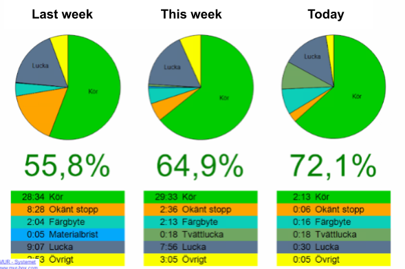 The MUR system is connected to the company's LAN network, which means that anyone with the right authorization can access the data that CPI/MUR generates. For example, everyone can have their own info screen on their computer that provides the data that is particularly interesting to the user.