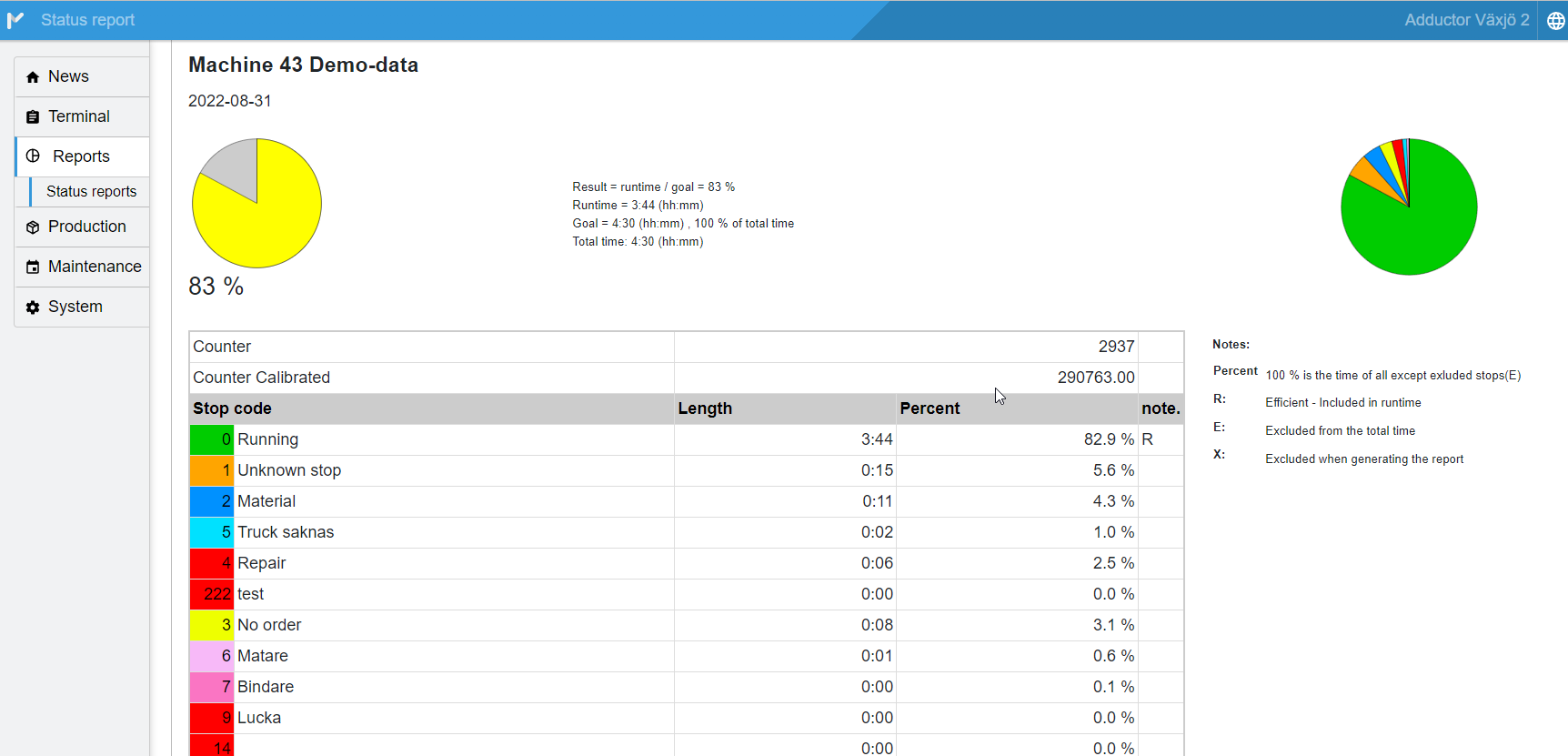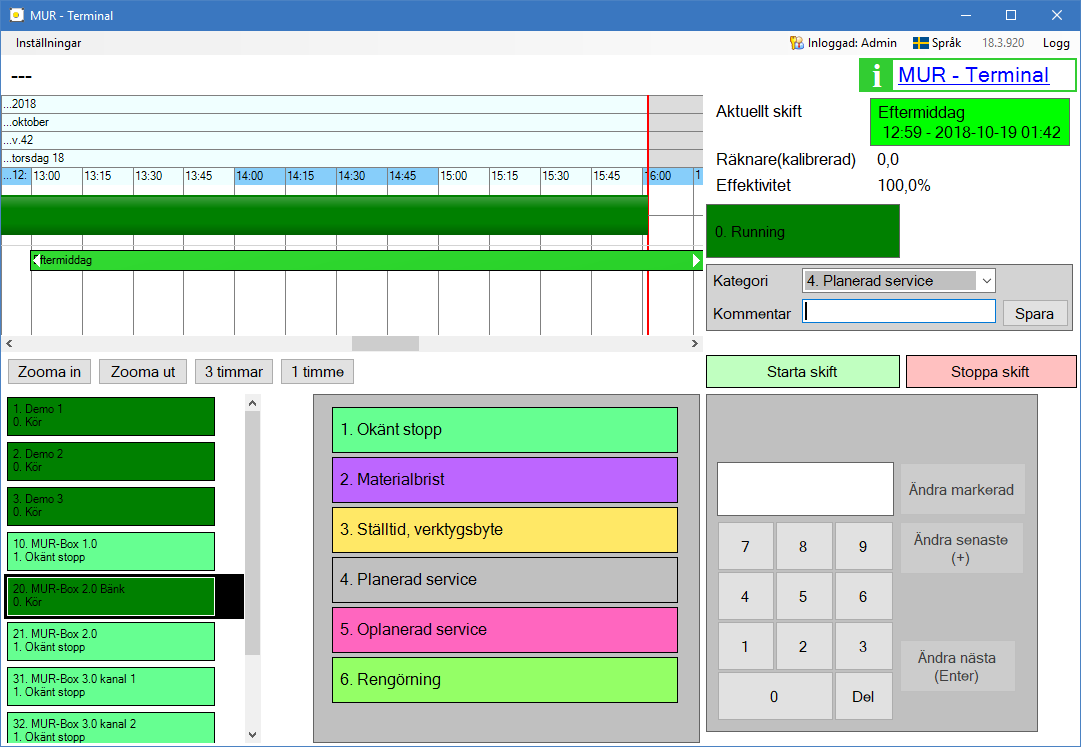 Several keyboards can be connected to the MUR-Box, from where the operator can easily specify the stop reason.