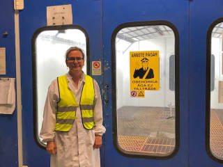 Production manager Malin Sahlsten at YTAB at the spray box where they measure manual work.